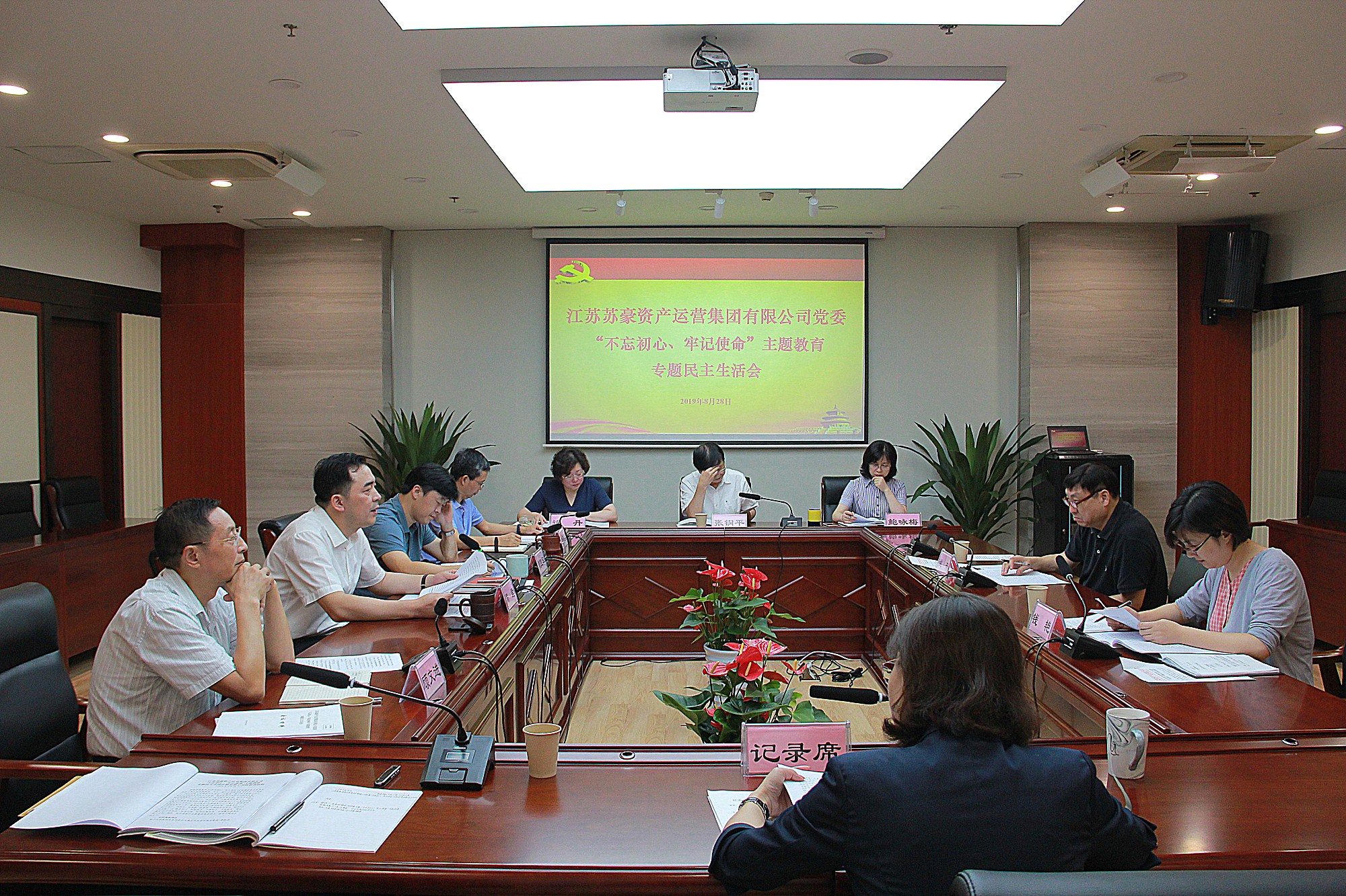 8月28日下午,根據(jù)《蘇豪控股集團(tuán)“不忘初心、牢記使命”主題教育民主生活會(huì)會(huì)議方案》,蘇豪資產(chǎn)運(yùn)營(yíng)集團(tuán)黨委召開“不忘初心、牢記使命”主題教育專題民主生活會(huì)。會(huì)議以“深入學(xué)習(xí)貫徹習(xí)近平新時(shí)代中國(guó)特色社會(huì)主義思想,錘煉忠誠(chéng)干凈擔(dān)當(dāng)?shù)恼纹犯瘢瑘F(tuán)結(jié)帶領(lǐng)集團(tuán)廣大干部職工為‘傳千秋華夏文明、創(chuàng)百年蘇豪大業(yè)’而奮斗”為主題,深入學(xué)習(xí)領(lǐng)會(huì)習(xí)近平新時(shí)代中國(guó)特色社會(huì)主義思想。緊密結(jié)合實(shí)際,對(duì)主題教育中查擺發(fā)現(xiàn)的問題、群眾反映的問題、上級(jí)黨組織巡察反饋的問題、以及上年度民主生活會(huì)提出整改尚未整改到位的問題,深刻進(jìn)行黨性分析,剖析問題根源,明確努力方向和整改措施。會(huì)議由周君同志主持,控股集團(tuán)主題教育指導(dǎo)組姚蓓同志、錢艷同志到會(huì)督導(dǎo)。